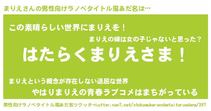 | ファンタジー風あだ名 | 『ヴァルマリーナ』『エターナルマリエー』 |