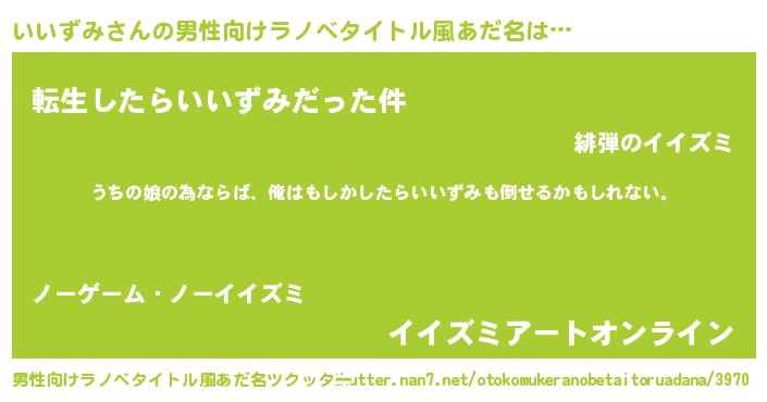 | ファンタジー風あだ名 | 『エターナルイイズミー』『イイフェル』 |