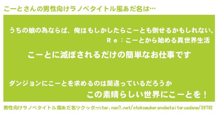 | 胡散臭い通販商品みたいなあだ名 | 『運命の人と巡り会える高級そうな壺…その名も「こーと」』 |