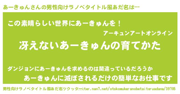 | 意味不明あだ名 | 『住所不定無職あーきゅん(6歳)』 |