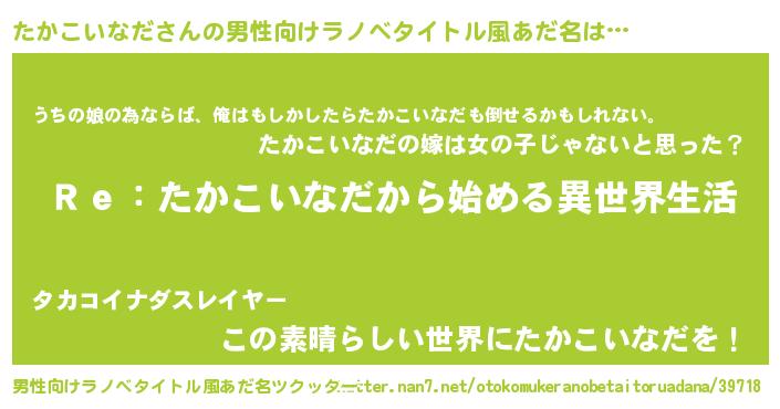 | 女子向けラノベタイトル風あだ名 | 『闇のたかこいなだ』 |