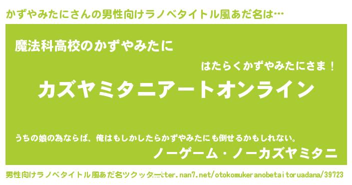 | 女子向けラノベタイトル風あだ名 | 『誰かこのかずやみたにを説明してください! ~契約から始まるウェディング~』 |