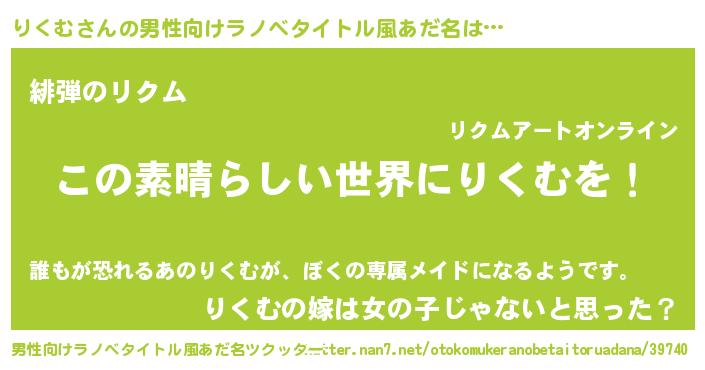 | 女子向けラノベタイトル風あだ名 | 『悪役りくむに転生したようですが、知った事ではありません』 |