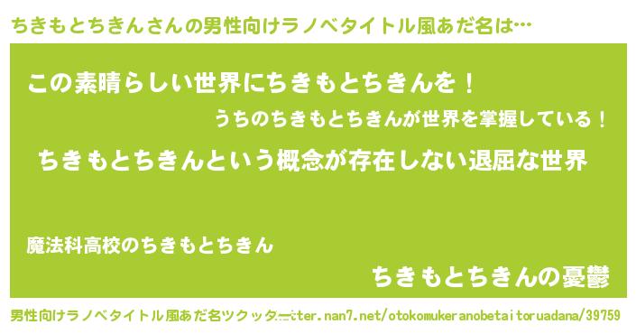 ちきもとちきんさんの男性向けラノベタイトル風あだ名をツクッター!