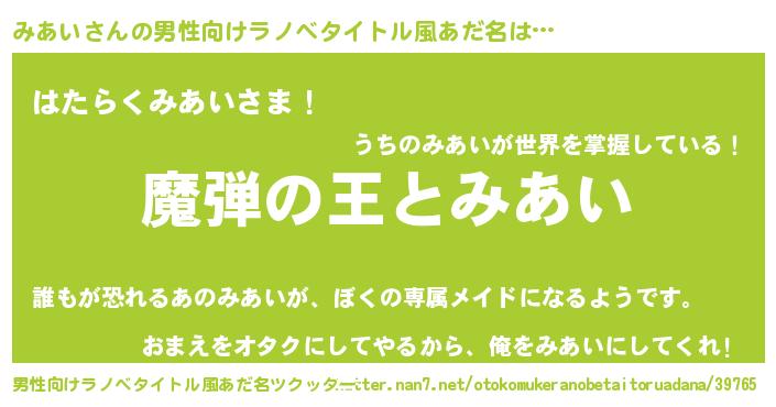 | ヘコむあだ名 | 『みあい(笑)』『みあにゅー』 |