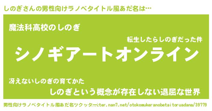 | ファンタジー風あだ名 | 『シノフェル』『ゼシノトゥ』 |