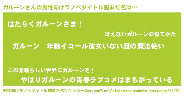 | 女子向けラノベタイトル風あだ名 | 『ガルーンの玉の輿計画!』 |