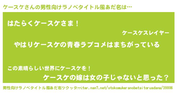 | 女子向けラノベタイトル風あだ名 | 『ケースケの雑貨屋さん』 |