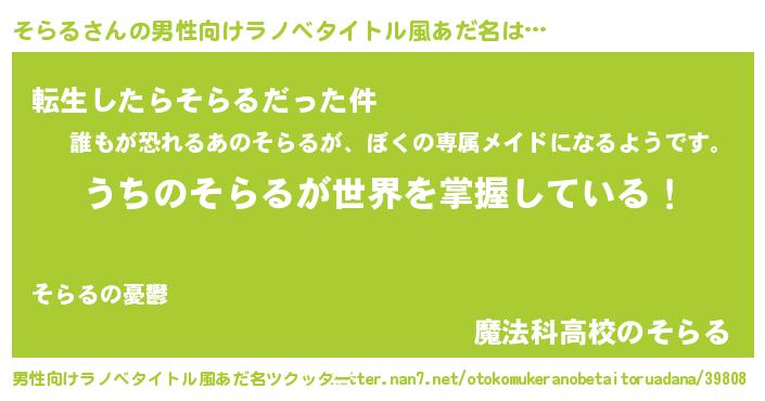 | 女子向けラノベタイトル風あだ名 | 『男装そらるの憂鬱な任務』 |