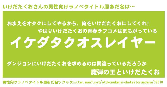 | ヒーロー風カッコイイあだ名 | 『正義の使者いけだたくお』 |
