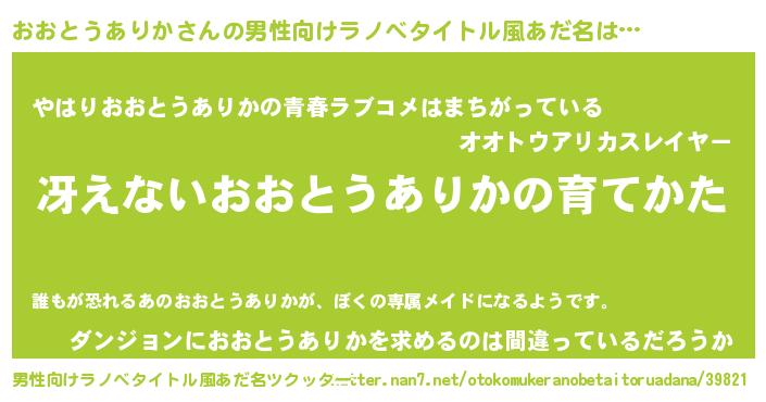 | 女子向けラノベタイトル風あだ名 | 『男装おおとうありかの憂鬱な任務』 |