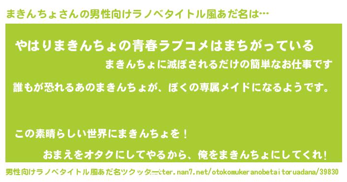 | 女子向けラノベタイトル風あだ名 | 『異世界でカフェまきんちょを開店しました。』 |