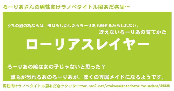 | ヒーロー風カッコイイあだ名 | 『ウルトラろーりあマン』『ネオローリア』 |