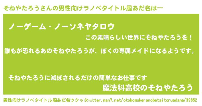 | 意味不明あだ名 | 『永久保存そねやたろう』 |
