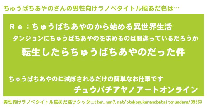 | ヒーロー風カッコイイあだ名 | 『サイバー戦士チュウバチアヤノ』 |