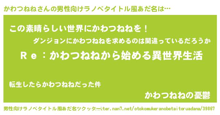 | ヒーロー風カッコイイあだ名 | 『サイバー戦士カワツネネ』 |