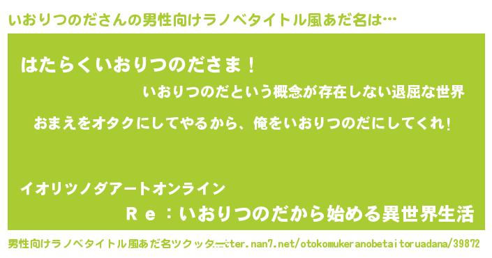 | 胡散臭い通販商品みたいなあだ名 | 『100人中100人が認めたマグネット磁石…その名も「いおりつのだ」』 |