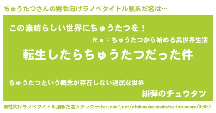 ちゅうたつさんの男性向けラノベタイトル風あだ名をツクッター!