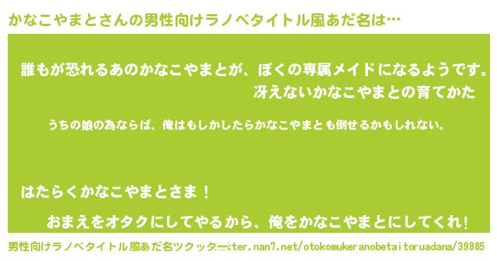 | 女子向けラノベタイトル風あだ名 | 『かなこやまとの婚約者』 |