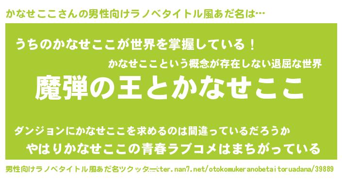 | 女子向けラノベタイトル風あだ名 | 『乙女ゲームの破滅フラグしかない悪役かなせここに転生してしまった…』 |