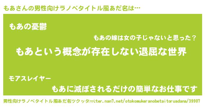 | 胡散臭い通販商品みたいなあだ名 | 『来世でも幸せになれる健康食品…その名も「もあ」』 |