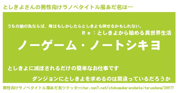としきよさんの男性向けラノベタイトル風あだ名をツクッター!