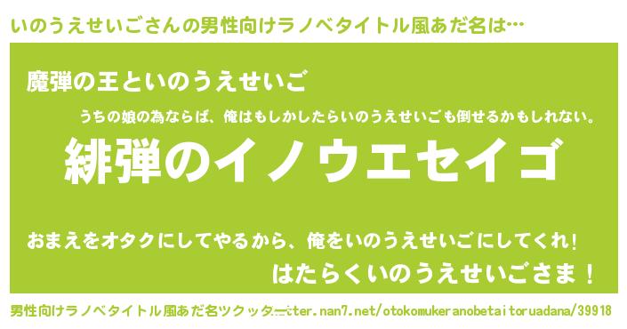 | ヒーロー風カッコイイあだ名 | 『仮面イノダー』『ネオイノウエセイゴ』 |