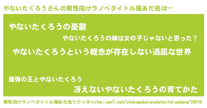 | 女子向けラノベタイトル風あだ名 | 『異世界で失敗しない100のやないたくろう』 |
