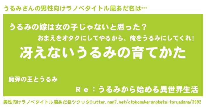 | 意味不明あだ名 | 『とにかく怪しいうるみ』『自称うるみ』 |