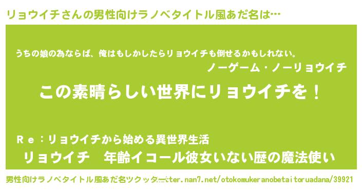 | 意味不明あだ名 | 『住所不定無職リョウイチ(89歳)』 |