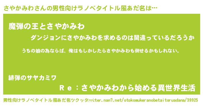 | 女子向けラノベタイトル風あだ名 | 『さやかみわの婚約者』『闇のさやかみわ』 |