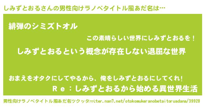 | 意味不明あだ名 | 『永久保存しみずとおる』 |