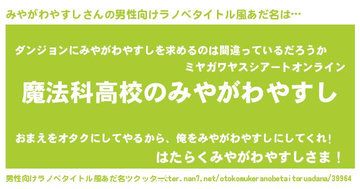 | 肩書あだ名 | 『みやがわやすし総統』 |