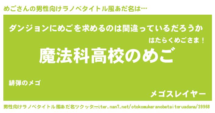 ファンタジー風あだ名 | 『ゼメゴトゥ』『ファントムメゴス』 |