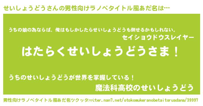 | 肩書あだ名 | 『せいしょうどうプロデューサー』 |