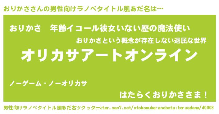 | 欧米人風あだ名 | 『マイケルおりかさ』『ダニエルおりかさ』 |