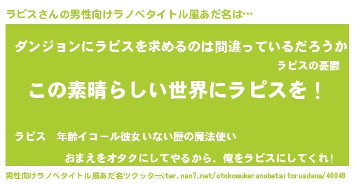| 意味不明あだ名 | 『住所不定無職ラピス(85歳)』 |