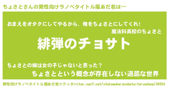 | ヘコむあだ名 | 『ちょさと(震え声)』『ちょ太郎』 |