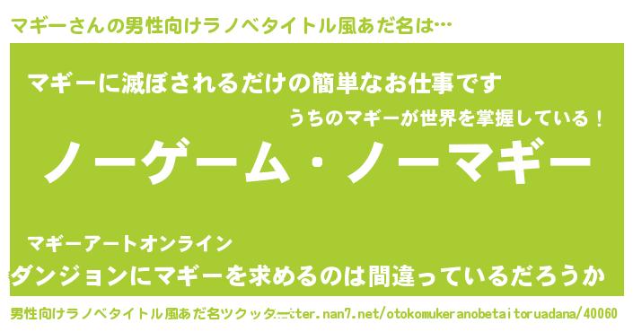 | ヘコむあだ名 | 『マギっちょ』『マギにー』 |