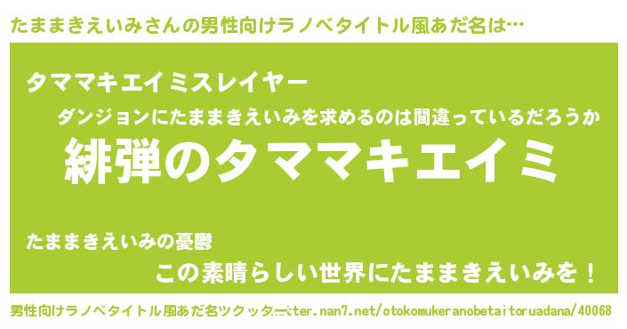 | 伝説のあだ名 | 『孤高の僧侶たままきえいみ』 |
