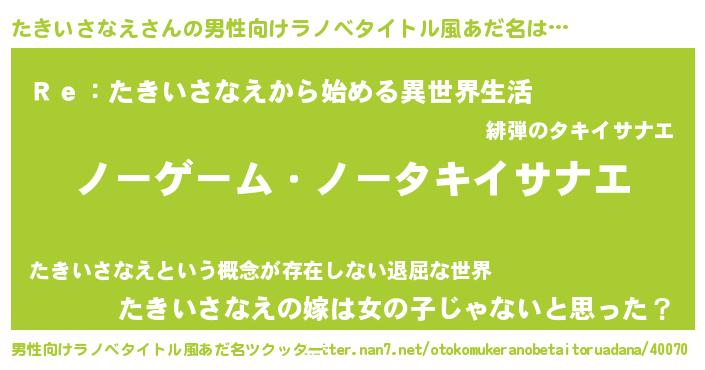 | ヘコむあだ名 | 『たき太郎』『たきいさなえ(小並感)』 |