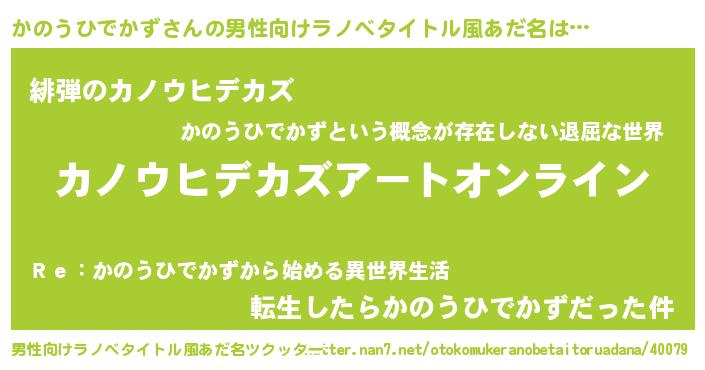 | 女子向けラノベタイトル風あだ名 | 『誰かこのかのうひでかずを説明してください! ~契約から始まるウェディング~』 |