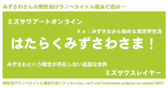 | 胡散臭い通販商品みたいなあだ名 | 『必ず成功するブレスレット…その名も「みずさわ」』 |