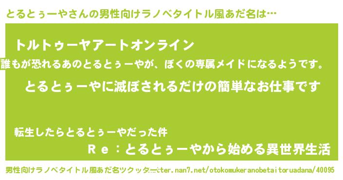 | ヘコむあだ名 | 『とるふぇ~』『とるとぅーや(震え声)』 |