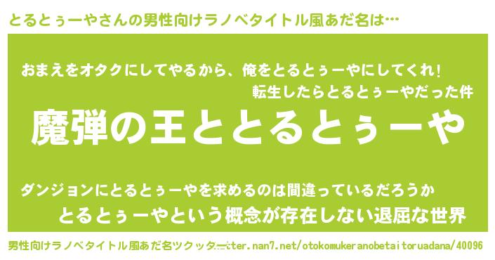 | 料理風あだ名 | 『とるとぅーやのカルパッチョ風』 |
