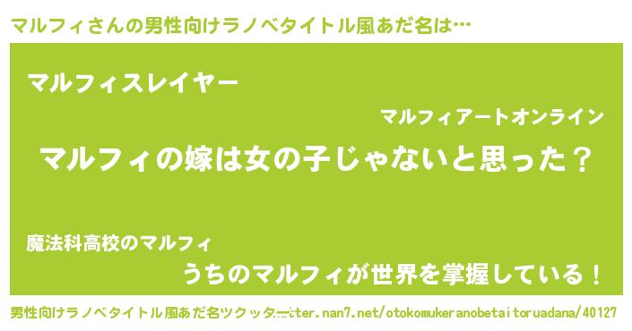 | ヒーロー風カッコイイあだ名 | 『幻影騎士マル』『スーパーマルフィ』 |