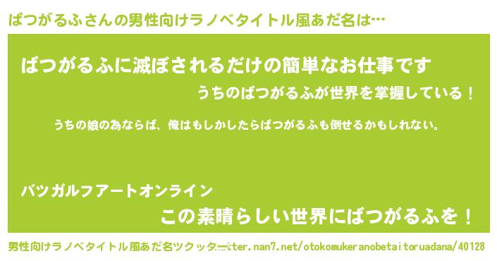 | 意味不明あだ名 | 『ばつがるふフォーエバー』 |