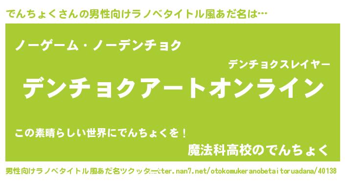 | ヘコむあだ名 | 『でんにー』『でんちょく(苦笑)』 |
