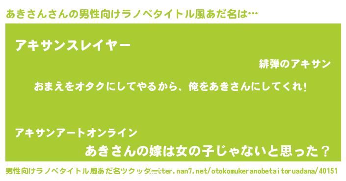 | ヒーロー風カッコイイあだ名 | 『友情の使者あきさん』『幻影騎士アキ』 |