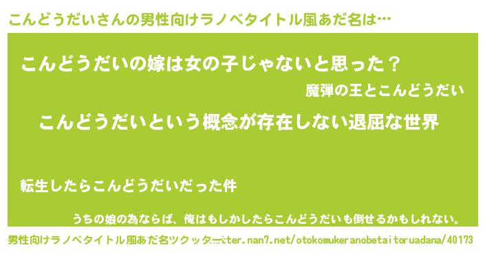 | 胡散臭い通販商品みたいなあだ名 | 『絶対に幸福をもたらす健康食品…その名も「こんどうだい」』 |